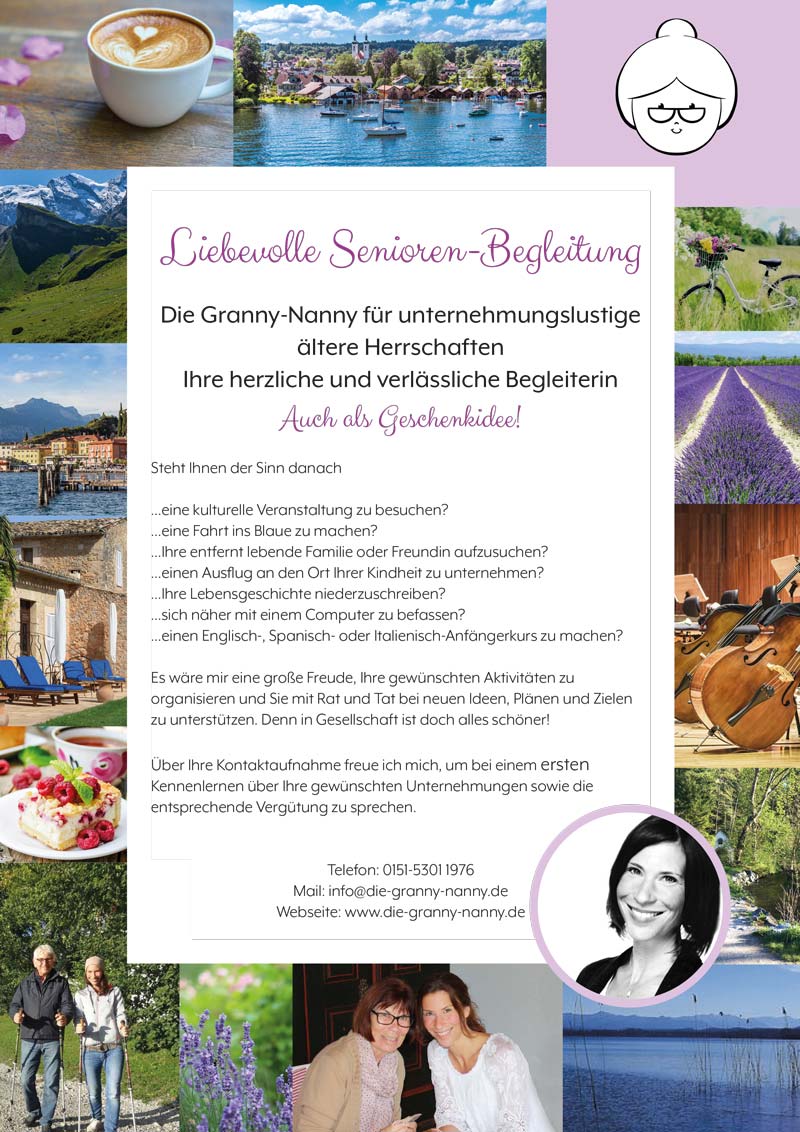 Anne Veit bietet mit Die Granny-Nanny eine persönliche Form der Seniorenbetreuung, die auf Nähe, Aktivität und gesellschaftliche Teilhabe ausgerichtet ist. Im Mittelpunkt steht die individuelle Begleitung im Alltag – mit Zeit, Aufmerksamkeit und einem offenen Blick für unterschiedliche Lebenssituationen.