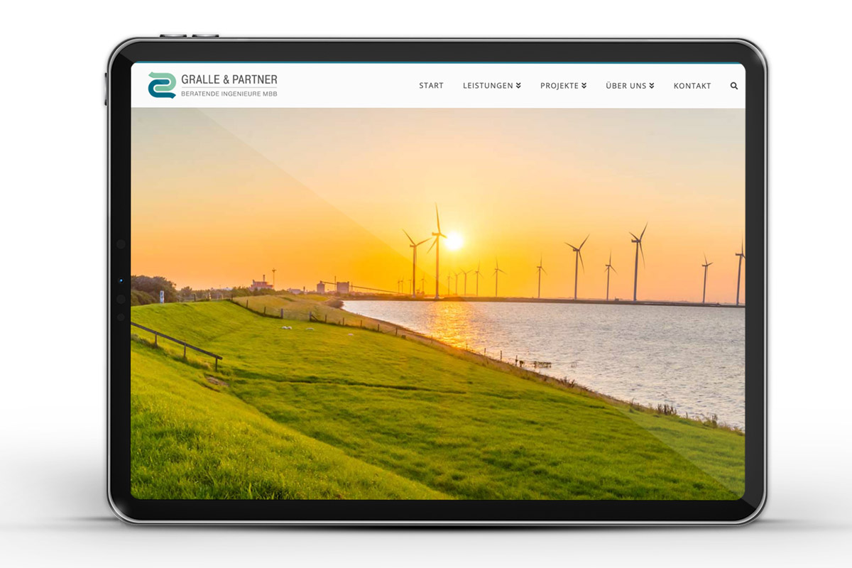 Die Gestaltung orientiert sich an einer klaren, funktionalen Formsprache und unterstreicht den professionellen Anspruch des Unternehmens. Durch eine intuitive Navigation und eine reduzierte Gestaltung wird die komplexe Themenwelt verständlich aufbereitet und die Leistungsfähigkeit von Gralle & Partner transparent kommuniziert.