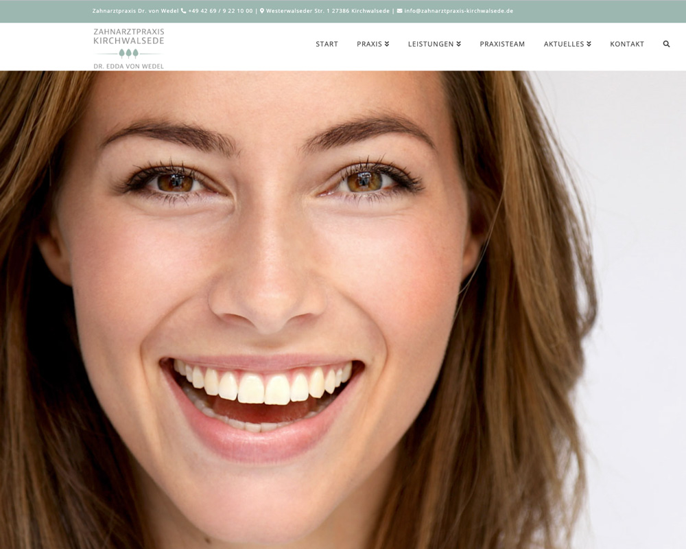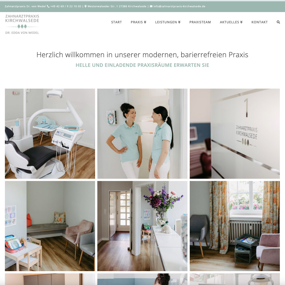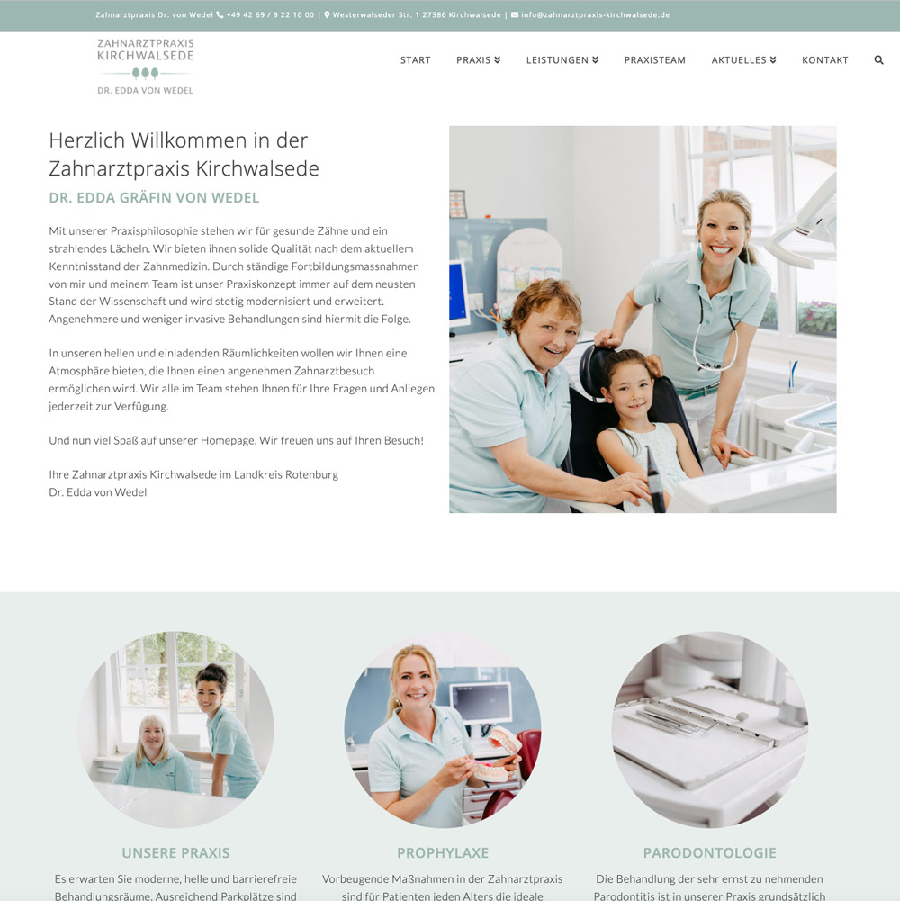 Die Website der Zahnarztpraxis Dr. Gräfin Edda von Wedel in Kirchwalsede ist genauso einladend und freundlich gestaltet wie die Praxis selbst. Mit einem klaren Fokus auf die Bedürfnisse der ganzen Familie strahlt sie eine warme Atmosphäre aus, die Vertrauen und Komfort vermittelt.